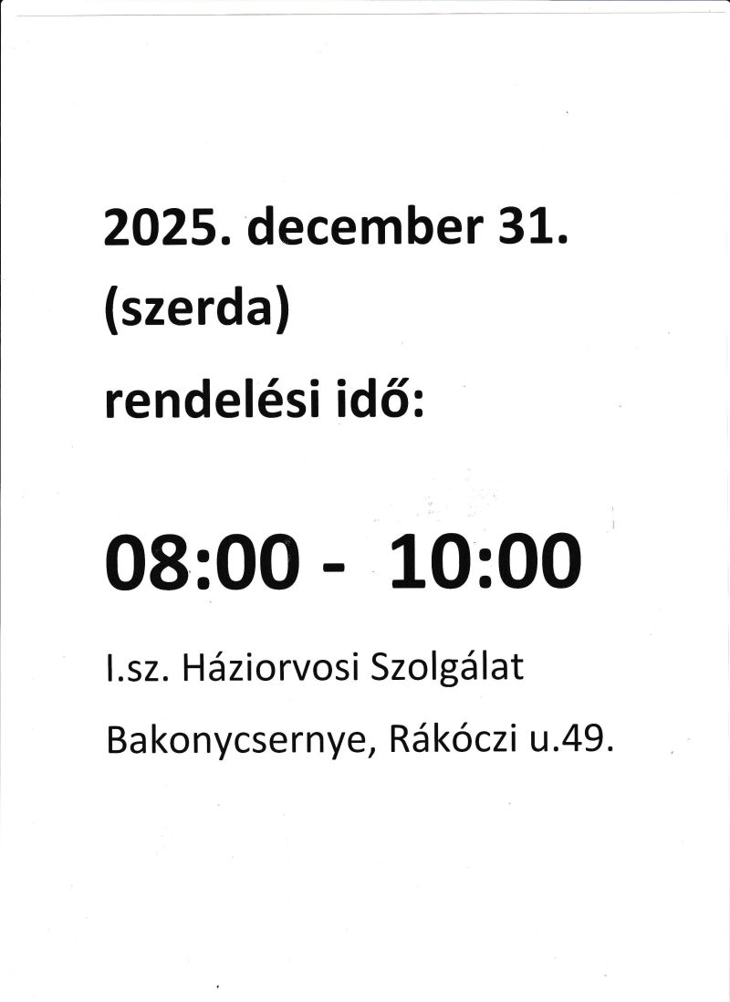 2025.12.31. (szerda) rendelési idő.